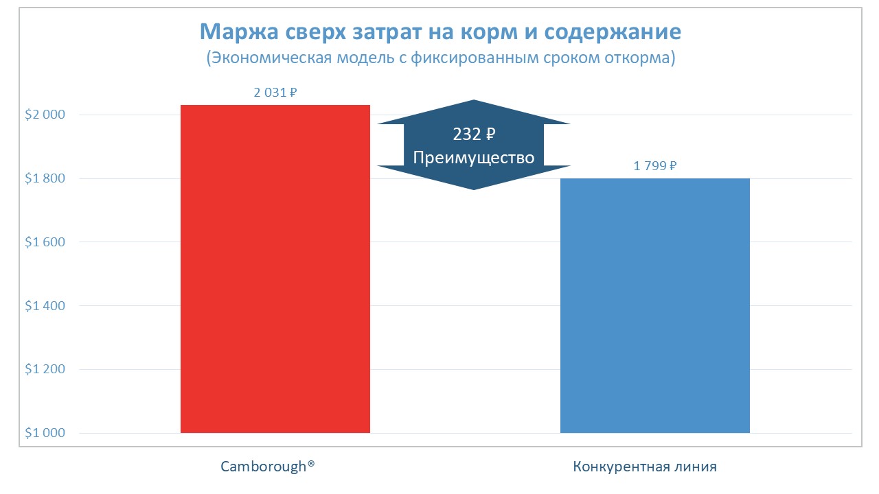 - увеличение продуктивности на +3,5 поросёнка/свиноматку/десятилетие в линии Camborough®
