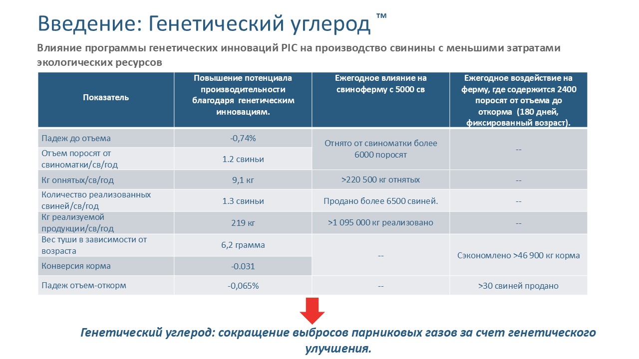 С научной точки зрения: согласно MacLeod и др. (2020, ФАО), повышение продуктивности на свиноматку — один из наиболее эффективных способов снижения интенсивности выбросов в системах свиноводства.