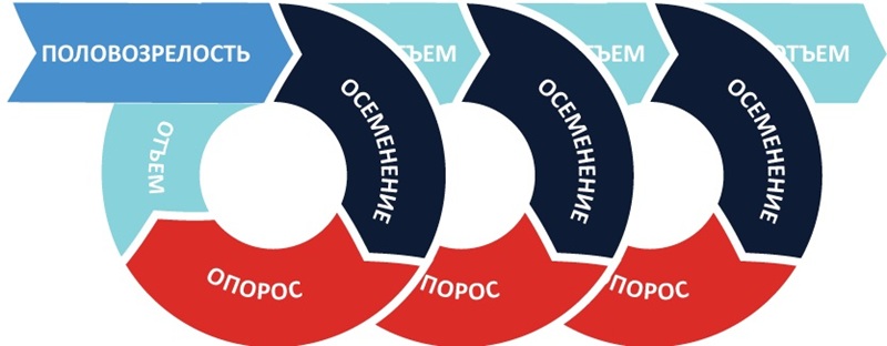 - Сокращение интервалов от отъёма до охоты — упрощённое групповое осеменение