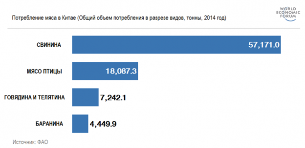 Китай потребляет больше мяса, чем любая другая страна: на его долю приходится половина мирового потребления свинины, согласно статье, опубликованной на сайте Всемирного экономического форума.