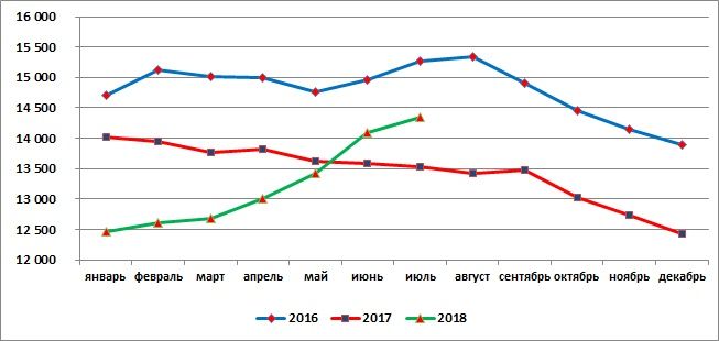 Средняя цена комбикормов для свиней в июле 2018 г. составила 14,3 тыс. руб./т - это на 1,7% больше, чем в предыдущем месяце, и на 6,0% больше, чем в июле 2017 года. С начала года цена на данный товар выросла на 15,1%. Это максимальная цена комбикормов для свиней с октября 2016 г.