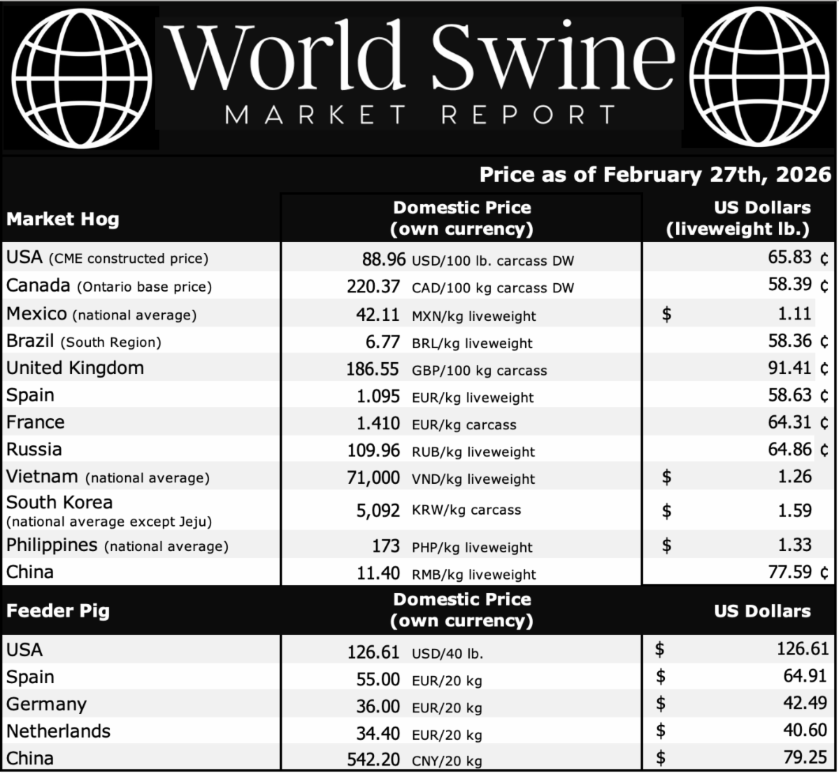 Из-за наводнений в конце прошлого года и вспышек африканской чумы свиней (АЧС) в некоторых районах Центрального Вьетнама свиноводы понесли серьёзные убытки, и предложение живых свиней на рынке стало значительно ниже, чем в предыдущие годы. Сокращение предложения отражается на цене свинины. В конце ноября цена на живой вес во Вьетнаме составляла 0,83 доллара США за фунт. Сегодня она достигла 1,26 доллара США за фунт — рост на 52% всего за три месяца. Это резкое изменение за очень короткий период. Существенное повышение цен обусловлено как значительным сокращением внутреннего предложения, так и празднованием Лунного Нового года, когда потребление свинины традиционно возрастает. Такой рост цен обеспечивает производителям свиней уверенную прибыльность.
