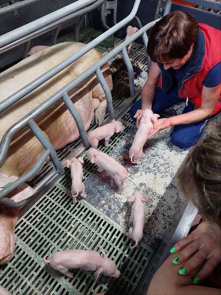 В июле начались первые опоросы и на ферме родились первые 20 малышей Ландрасов.