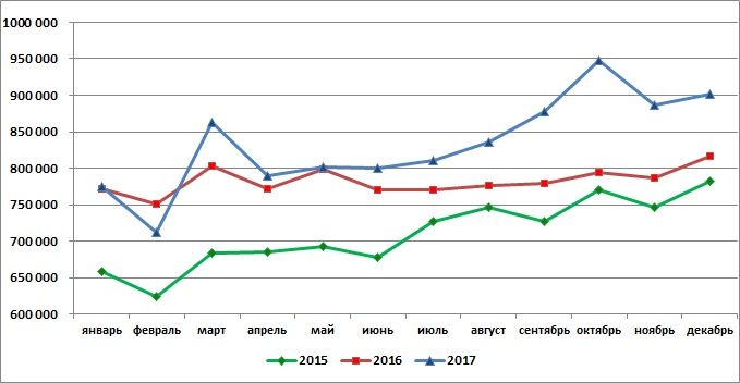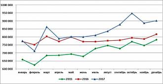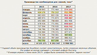 За период с января 2015 г. минимальный объём производства комбикормов для свиней в России был зафиксирован в феврале 2015 г. - 624,2 тыс. тонн, напоминает SoyaNews. Максимальным стал объём, произведенный в октябре 2017 г. - 947,1 тыс. тонн.