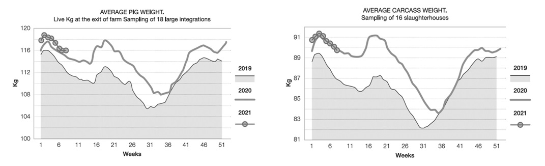 Испытания, проведенные на откормочной ферме в Испании у свиней на откорме, показали стабильное снижение живой массы и массы туш в середине лета с 2017 по 2019 гг. (см. график 2).